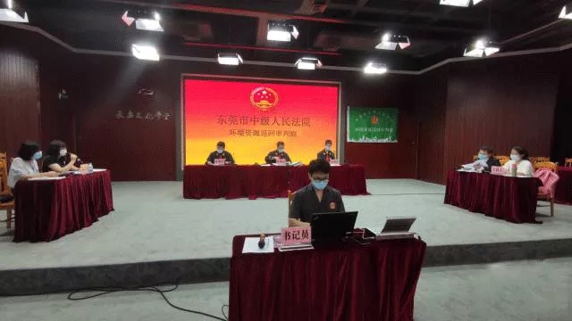 6月1日上午10點,在長安鎮(zhèn)長安圖書館的長安文化學(xué)堂里,東莞市中級人民法院的一宗涉環(huán)境資源案件正在公開開庭。人大代表、政協(xié)委員、律協(xié)成員、企業(yè)代表、環(huán)保系統(tǒng)工作人員等50多人安靜的坐在臺下旁聽,并不時記錄著庭審中的重點。