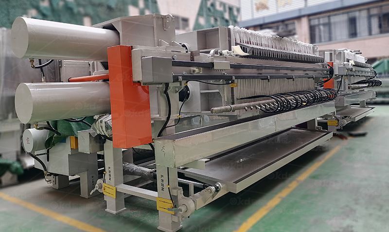 在一般的壓濾機都是使用的明流排水,所以我們對明流排水的廂式壓濾機或隔膜壓濾機都很熟悉,我們看到這樣的壓濾機,當過濾液通過濾室后,直接通過濾板下方的排水管道,在通過水龍頭直接的排出設備外。而暗流的壓濾機設備就是在水龍頭的下方設計了一個收集過濾液的系統,將過濾出來的設計在通過管道集合起來。常規的方法就是將壓濾機濾板下的水龍頭再接一個密封的軟管,而軟管的下方設計了一個與所有軟管相連的更大一些的管道,這樣就可以將液體和好的保護起來。暗流壓濾機一般適用于有毒,有味,易揮發,易燃的物料。
