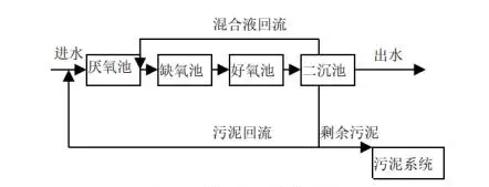 A2/O工藝是典型脫氮除磷工藝,具有悠久的歷史,在國(guó)內(nèi)運(yùn)行經(jīng)驗(yàn)豐富,應(yīng)用范圍廣泛。A2/O工藝流程圖見圖1。